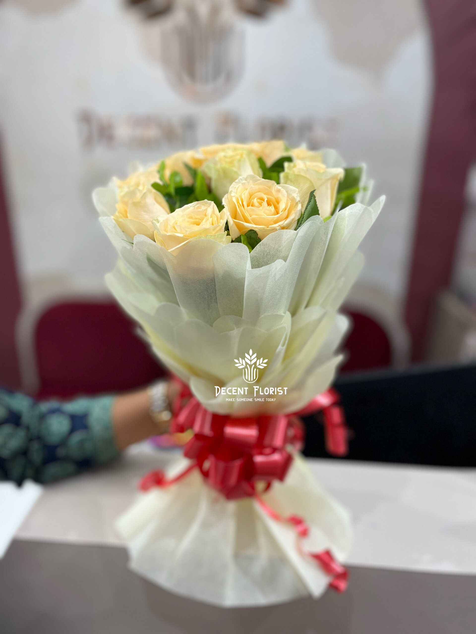 Celebrate sweet moments with our charming 10 Peach Roses Bouquet, beautifully wrapped in elegant off-white paper. Peach roses symbolize gratitude, sincerity, and admiration, making this bouquet a perfect gift to express heartfelt feelings in a soft and graceful way.
