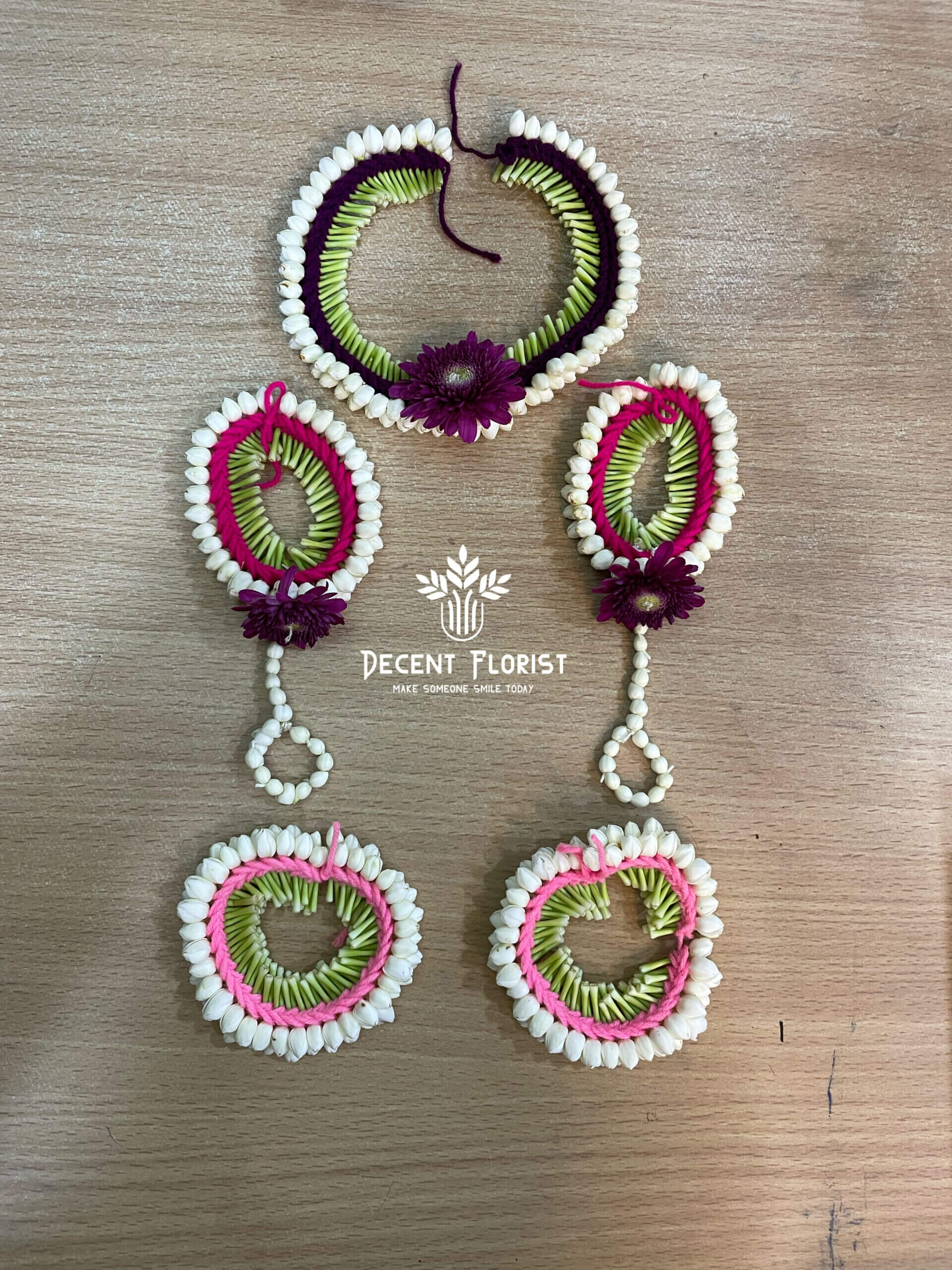 “Welcome to Decent Florist! Explore our beautiful collection of baby flower jewelry, including delicate necklaces, matching hand poochas, and elegant leg flower payals, all crafted with vibrant Tagar flowers. Each piece showcases the charm and freshness of nature, perfect for special occasions and heartfelt gifts.”